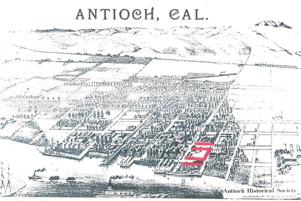 In the 1800s, Antioch's Chinatown consisted of homes and stores on both sides of First and Second streets, from G to I streets, as highlighted in red on the map.